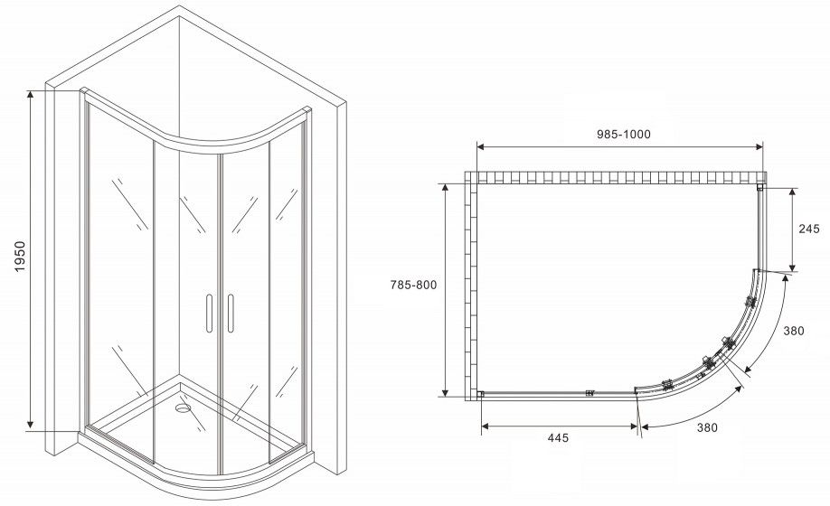 Душевой уголок ABBER Schwarzer Diamant AG01180B 100x80см чёрный купить