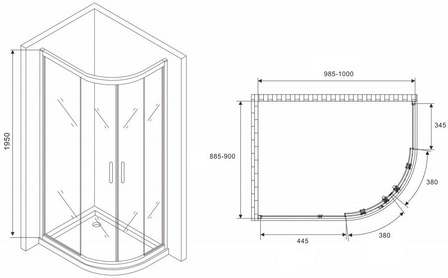 Душевой уголок ABBER Schwarzer Diamant AG01190B 100x90см чёрный купить