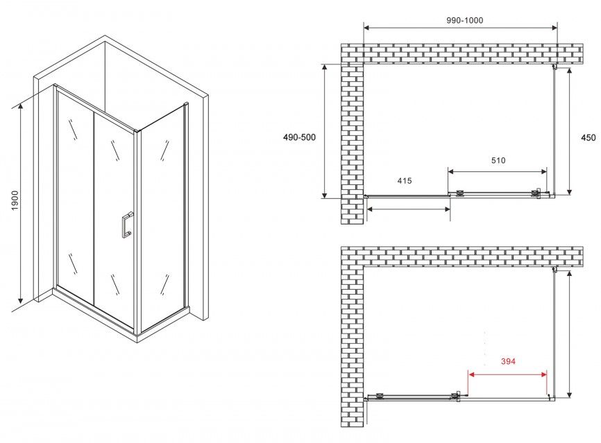 Душевой уголок ABBER Schwarzer Diamant AG301005-S505 100x50см хром купить
