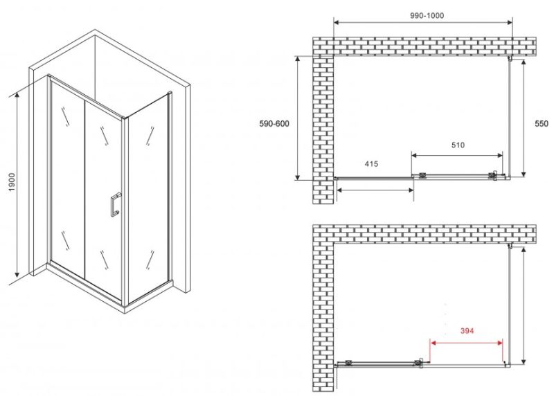 Душевой уголок ABBER Schwarzer Diamant AG301005-S605 100x60см хром купить