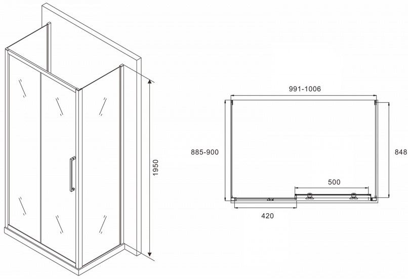 Душевой уголок ABBER Schwarzer Diamant AG30100H-S90-S90 100x90см хром купить