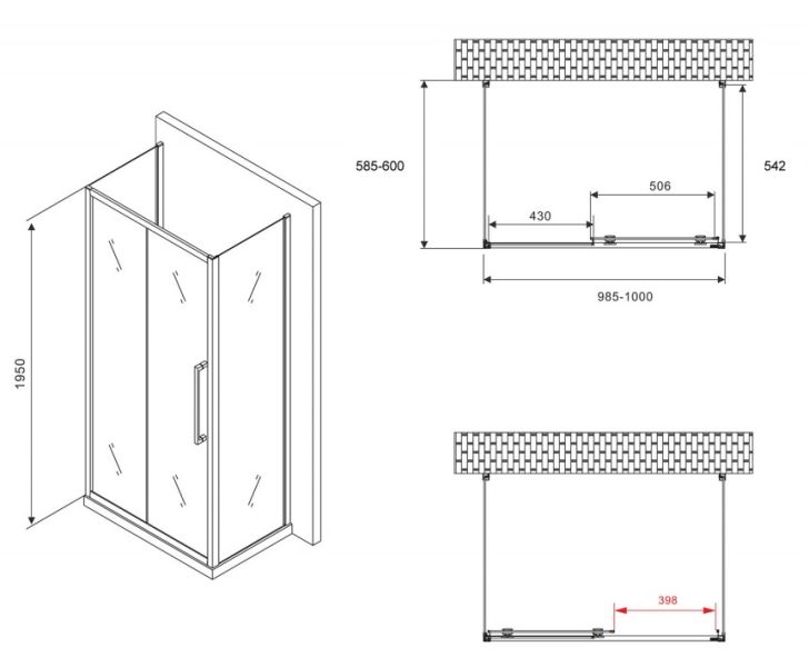 Душевой уголок ABBER Schwarzer Diamant AG30100MH-S60M-S60M 100x60см хром купить