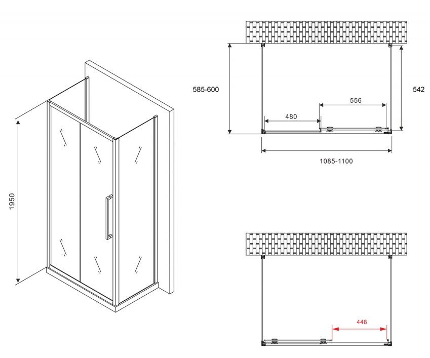 Душевой уголок ABBER Schwarzer Diamant AG30110MH-S60M-S60M 110x60см хром купить