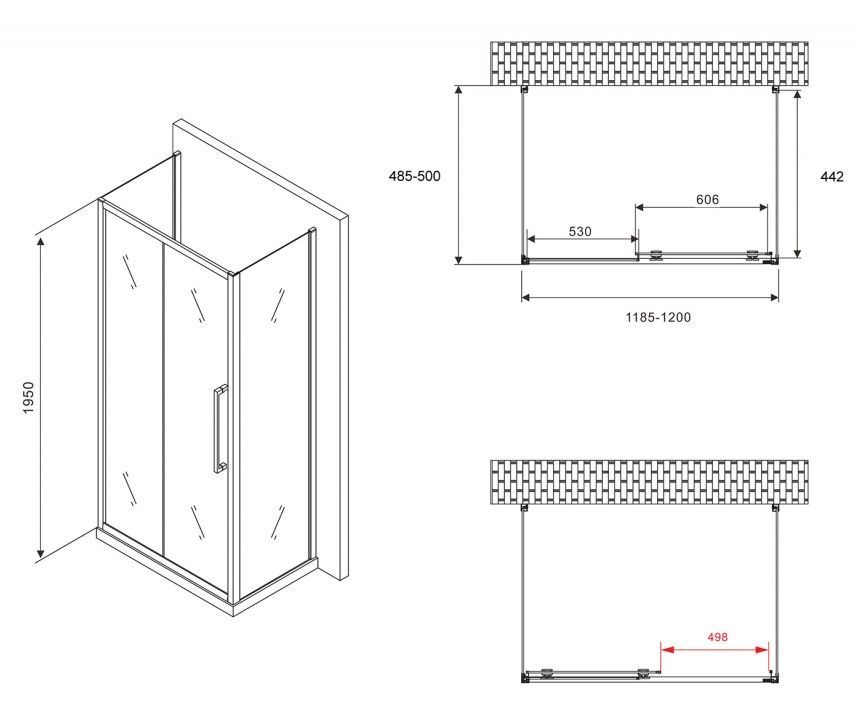 Душевой уголок ABBER Schwarzer Diamant AG30120BH-S50B-S50B 120x50см чёрный купить
