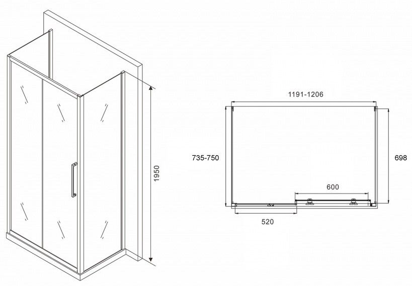 Душевой уголок ABBER Schwarzer Diamant AG30120BH-S75B-S75B 120x75см чёрный купить