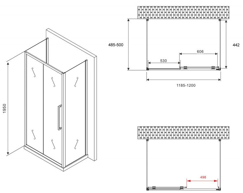 Душевой уголок ABBER Schwarzer Diamant AG30120MH-S50M-S50M 120x50см хром купить