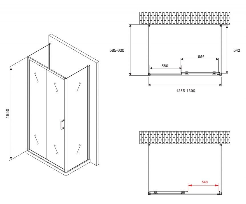 Душевой уголок ABBER Schwarzer Diamant AG30130B-S60B-S60B 130x60см чёрный купить