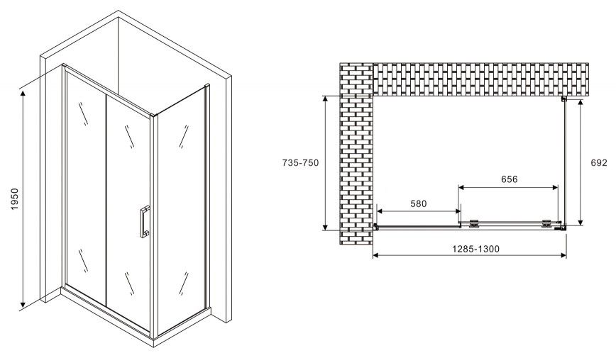 Душевой уголок ABBER Schwarzer Diamant AG30130B-S75B 130x75см чёрный купить