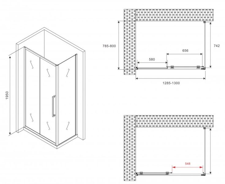 Душевой уголок ABBER Schwarzer Diamant AG30130BMH-S80BM 130x80см чёрный купить