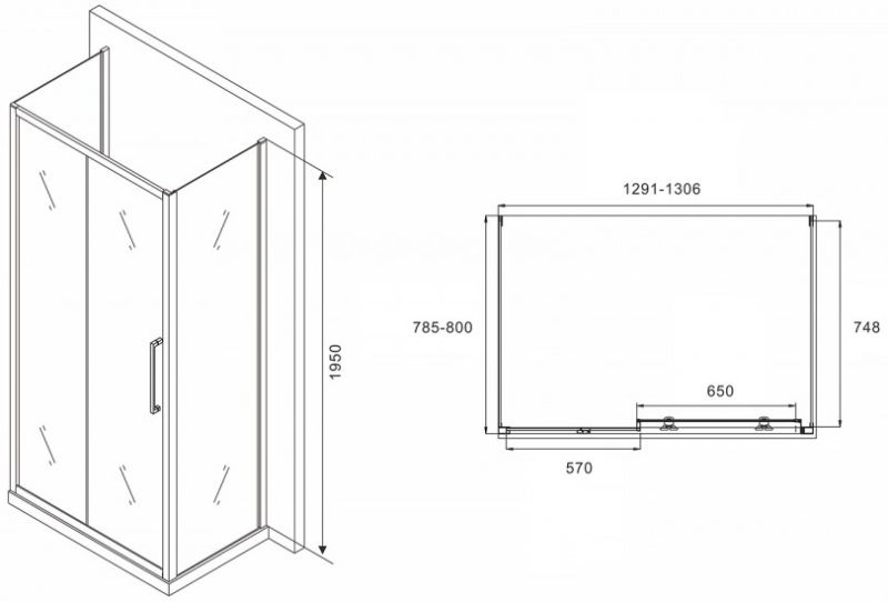 Душевой уголок ABBER Schwarzer Diamant AG30130H-S80-S80 130x80см хром купить