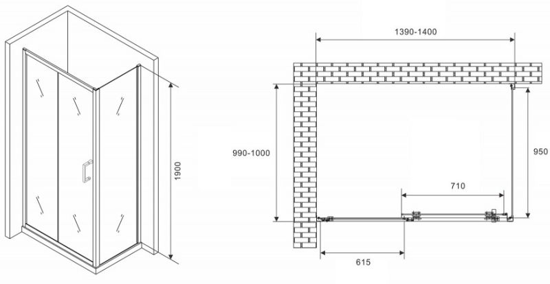 Душевой уголок ABBER Schwarzer Diamant AG301405-S1005 140x100см хром купить