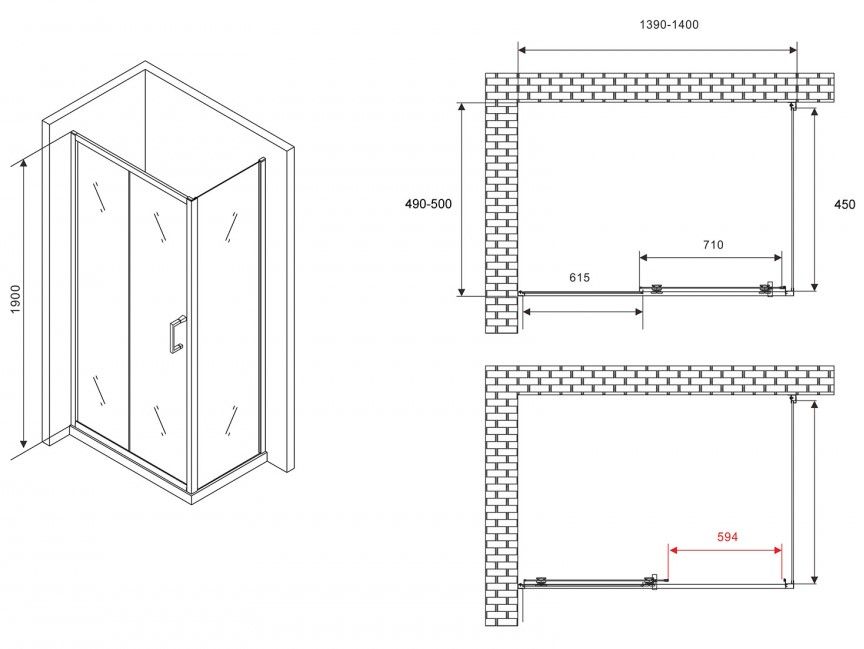 Душевой уголок ABBER Schwarzer Diamant AG301405-S505 140x50см хром купить