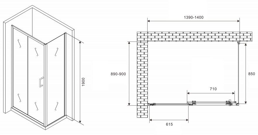 Душевой уголок ABBER Schwarzer Diamant AG301405-S905 140x90см хром купить