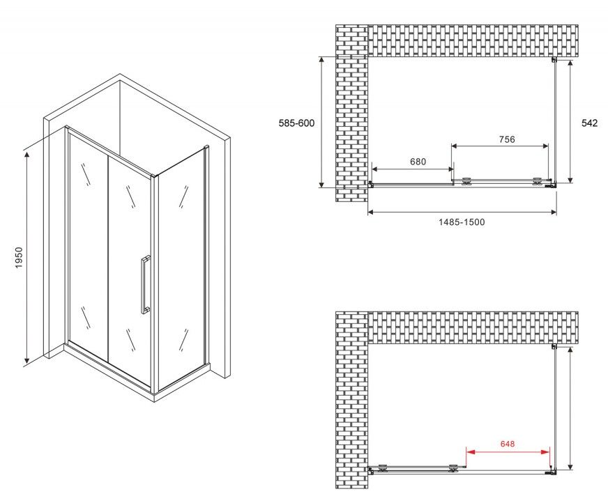 Душевой уголок ABBER Schwarzer Diamant AG30150BH-S60B 150x60см чёрный купить