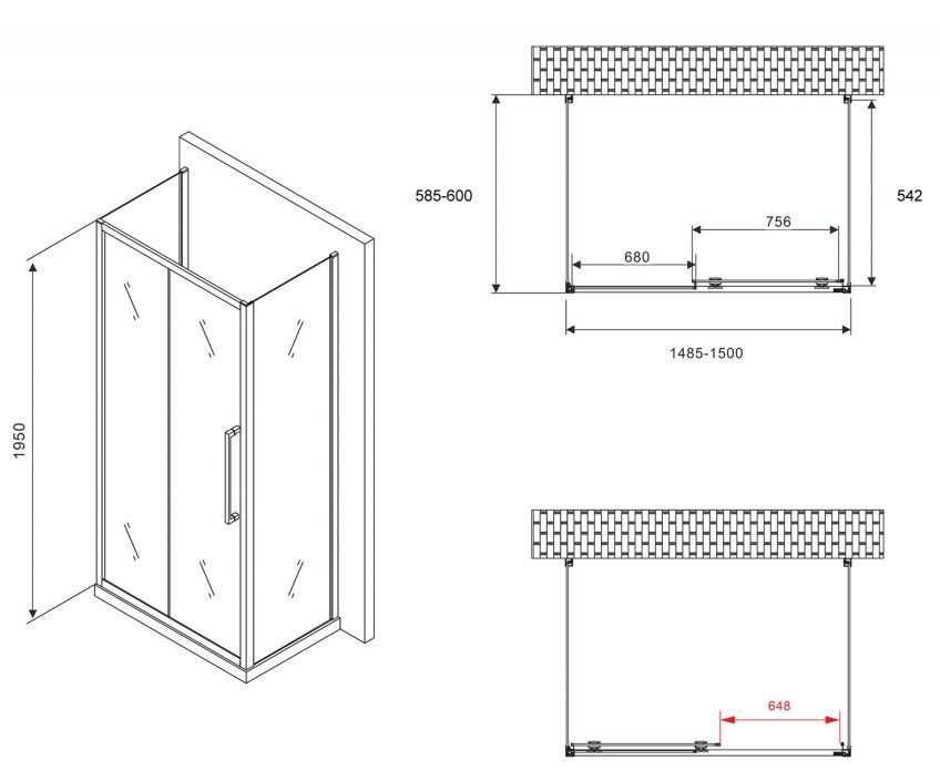 Душевой уголок ABBER Schwarzer Diamant AG30150H-S60-S60 150x60см хром купить