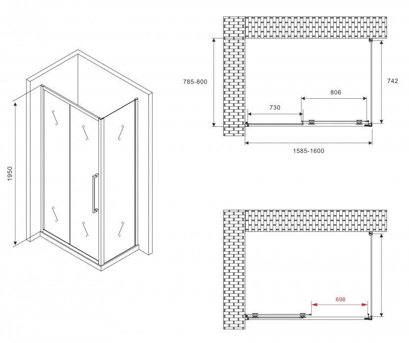 Душевой уголок ABBER Schwarzer Diamant AG30160BMH-S80BM 160x80см чёрный купить