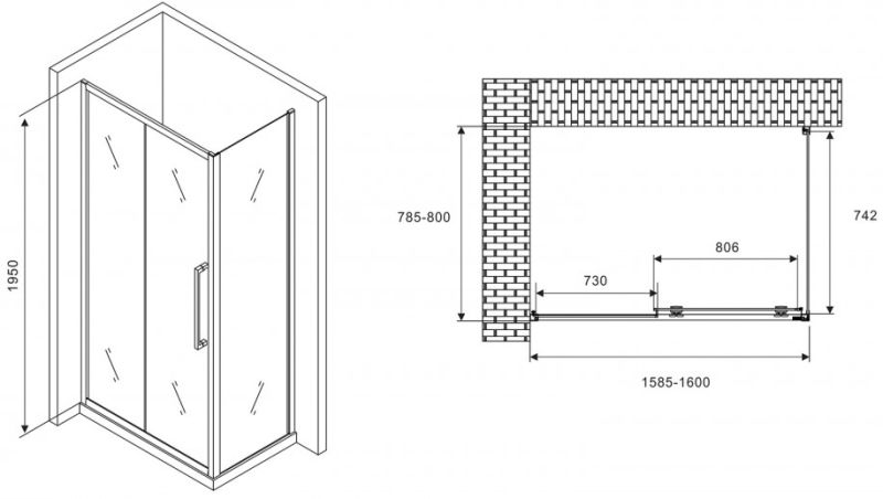 Душевой уголок ABBER Schwarzer Diamant AG30160H-S80 160x80см хром купить