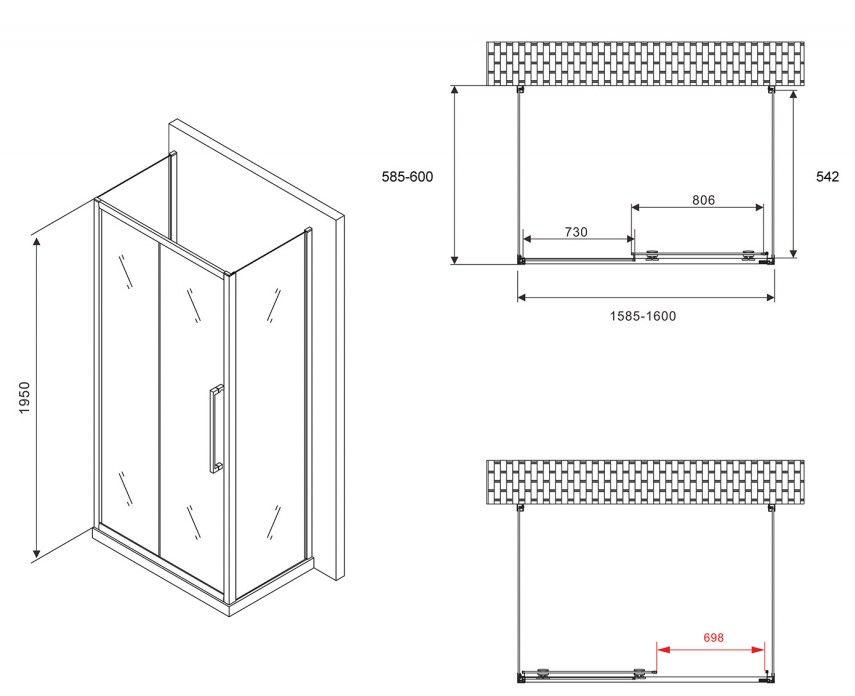 Душевой уголок ABBER Schwarzer Diamant AG30160MH-S60M-S60M 160x60см хром купить