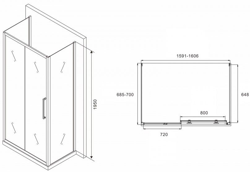 Душевой уголок ABBER Schwarzer Diamant AG30160MH-S70M-S70M 160x70см хром купить