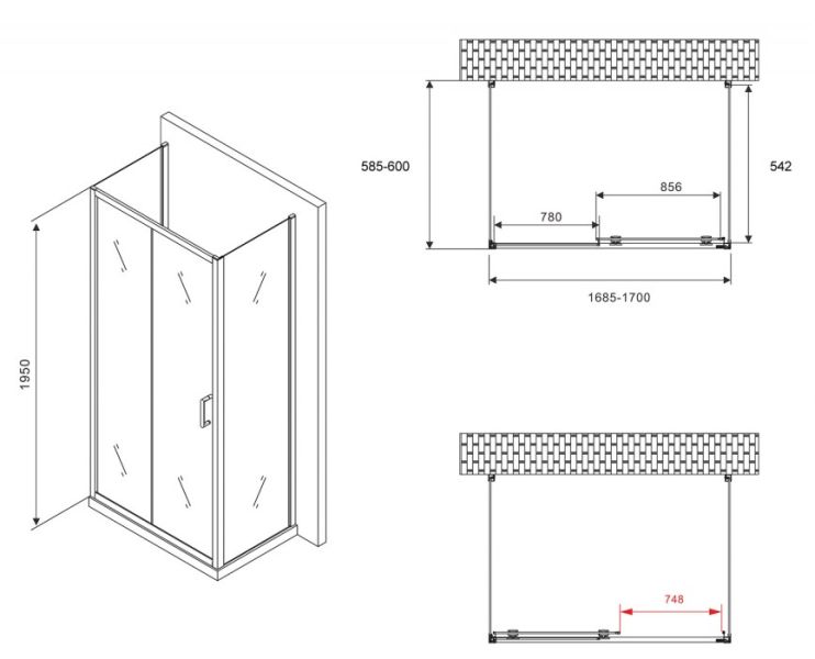 Душевой уголок ABBER Schwarzer Diamant AG30170B-S60B-S60B 170x60см чёрный купить