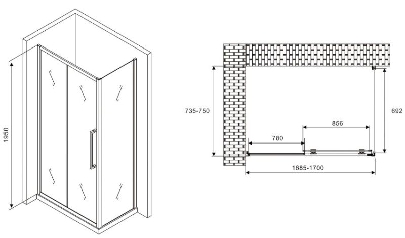Душевой уголок ABBER Schwarzer Diamant AG30170BH-S75B 170x75см чёрный купить