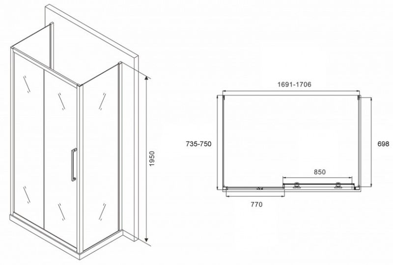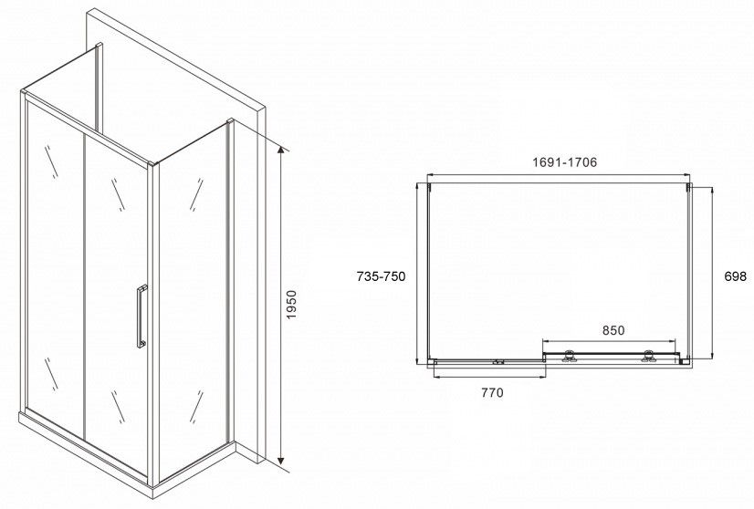 Душевой уголок ABBER Schwarzer Diamant AG30170BH-S75B-S75B 170x75см чёрный купить