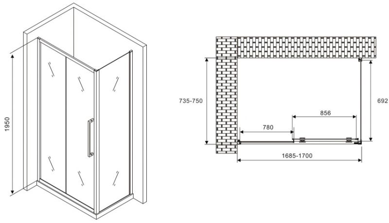 Душевой уголок ABBER Schwarzer Diamant AG30170H-S75 170x75см хром купить