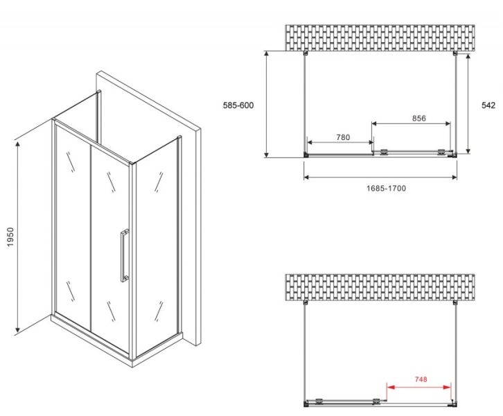 Душевой уголок ABBER Schwarzer Diamant AG30170MH-S60M-S60M 170x60см хром купить
