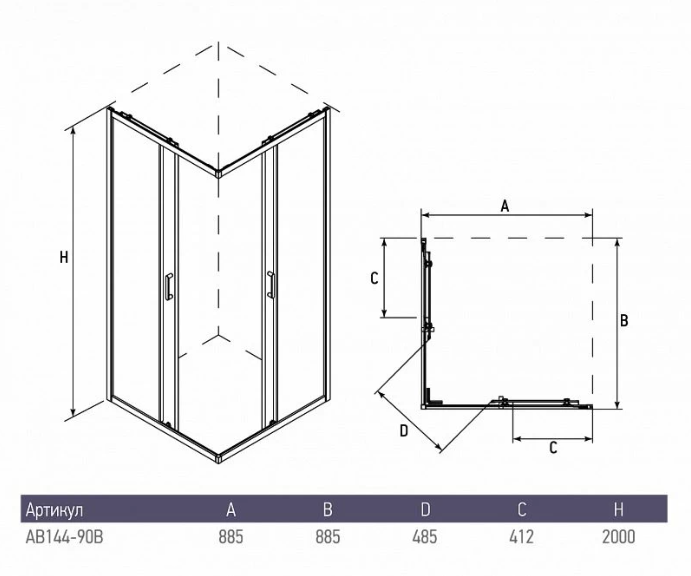 Душевой уголок Alex Baitler AB1490X1 90x90 смСтекло прозрачное 6 мм.
