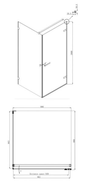 Душевой уголок Ambassador Abner 10011102R 100x100 распашная дверь устанавливается справа
