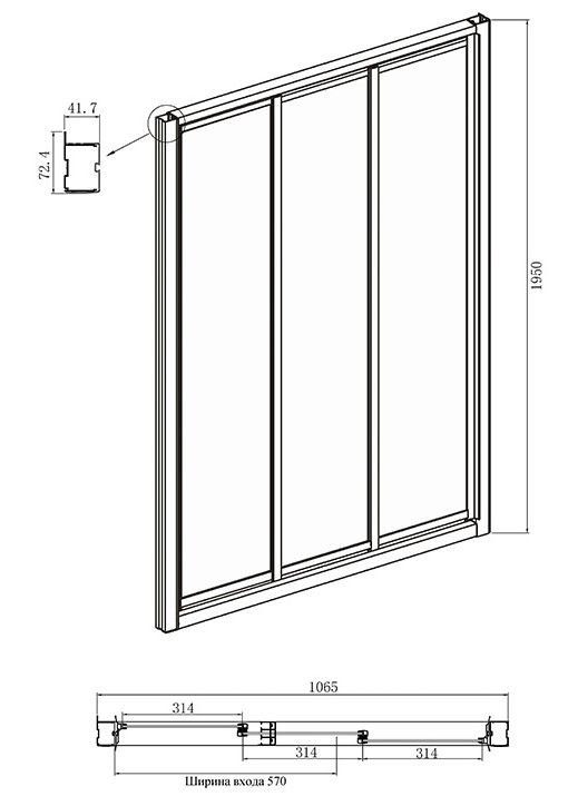 - Конструкция дверей: раздвижная