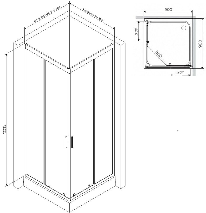 Душевой уголок Am.Pm Gem 90x90см чёрный матовый W90G-403-090BT купить