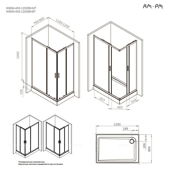 Душевой уголок AM.PM Gem W90G-403-120280-MT профиль хром 120х80 см купить