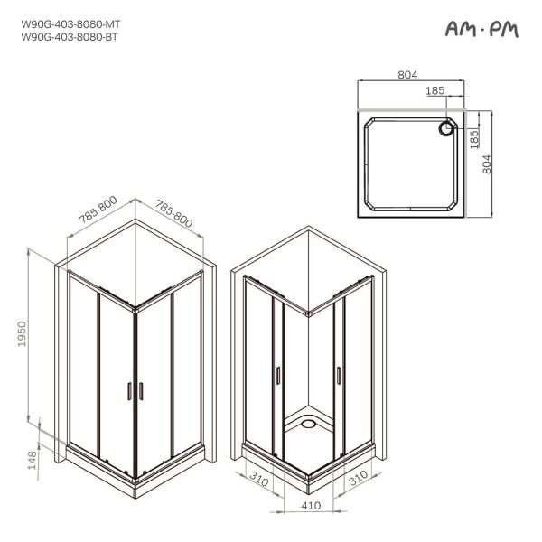 Душевой уголок Am.Pm Gem W90G-403-8080-BT 80x80 см без поддона чёрный матовый купить
