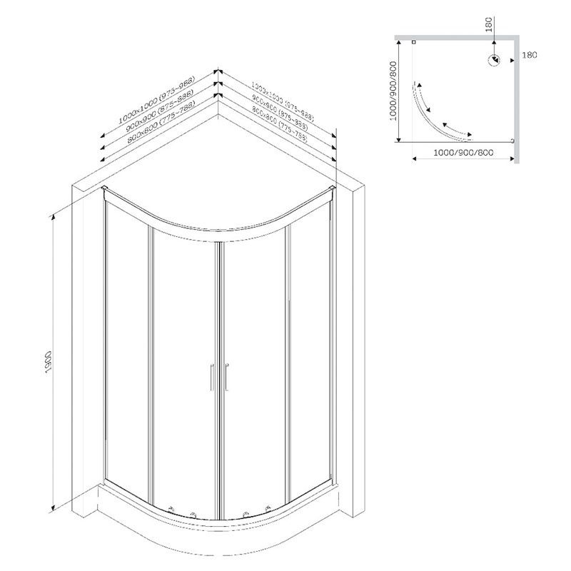 Душевой уголок Am.Pm Tender Twin Slide, 90 x 90 см, профиль хром матовый, стекло прозрачное с полосками, без поддона, W45G-301-090TMРазмеры (Ш Г): 90x90 см