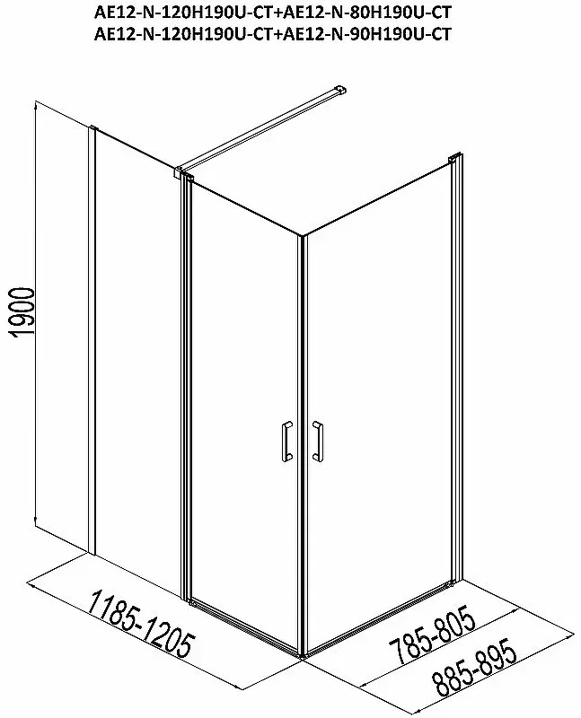 Дверь в нишу или комбинации AQUANET Cinetic 120x190