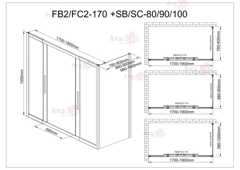 Душевой уголок AvaCan FB2 170-190 + SB100 MT чёрный купить