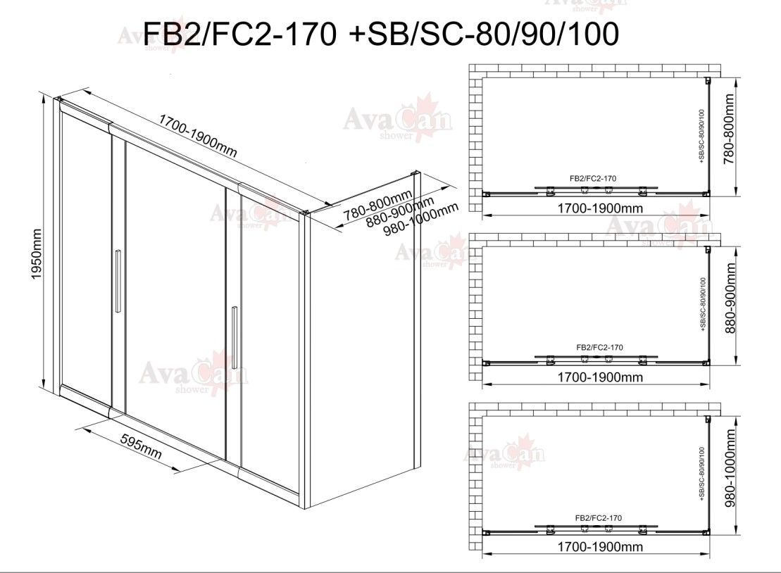 Душевой уголок AvaCan FB2 170-190 + SB90 чёрный купить