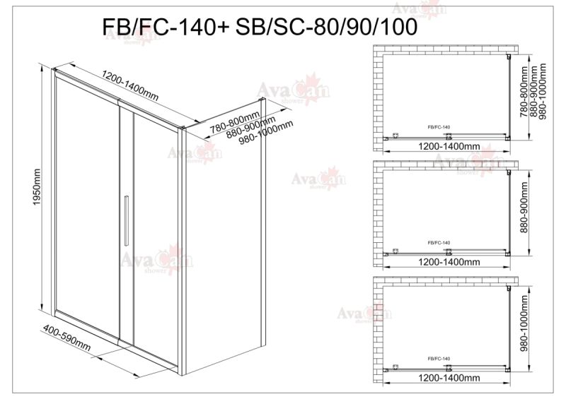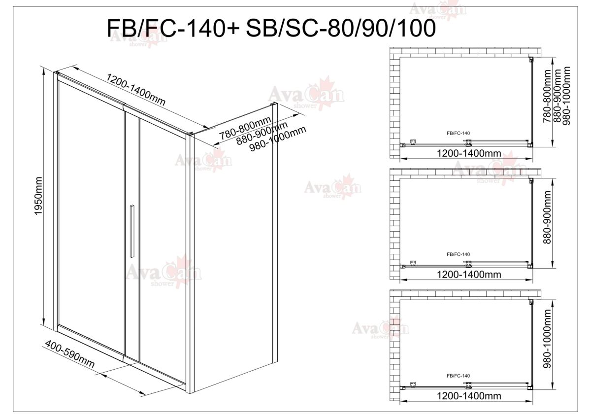 Душевой уголок AvaCan FС 120-140 + SС100 MT хром купить