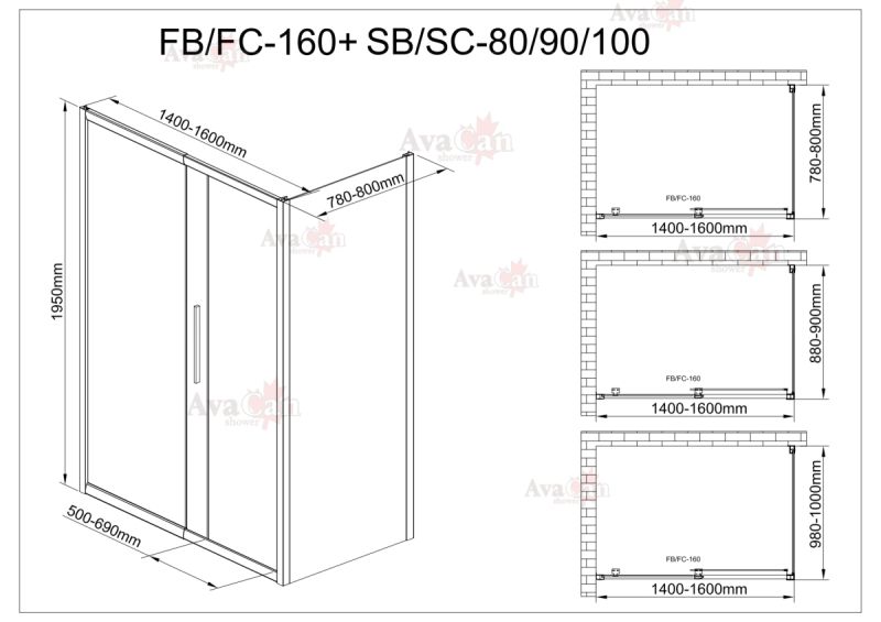 Душевой уголок AvaCan FС 140-160 + SС80 хром купить