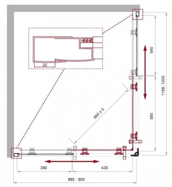 Регулировка ширины: предусмотрена за счет боковых профилей