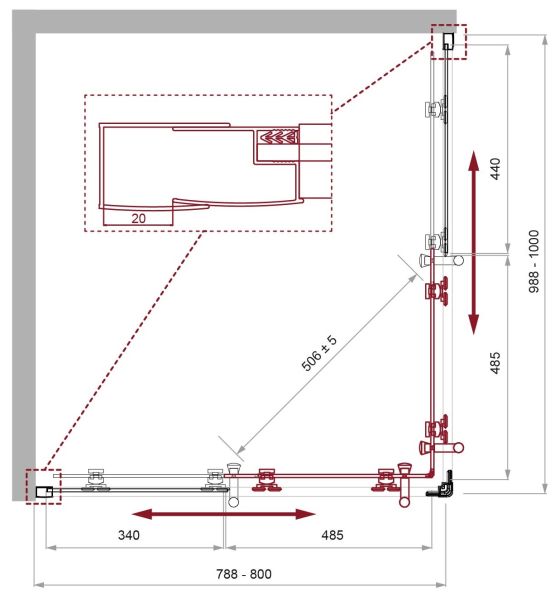 Регулировка ширины: предусмотрена за счет боковых профилей