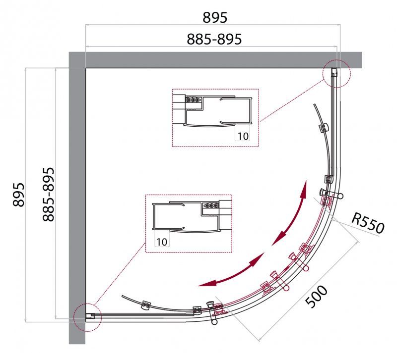 Регулировка ширины: предусмотрена за счет боковых профилей
