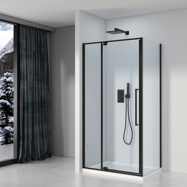 Душевое ограждение датского производителя Black&White в габаритных размерах 100×80 см. Несущая конструкция реализована в виде алюминиевого анодированного профиля с ребром жесткости, в черном матовом цвете. На изделии установлены закаленные стекла толщиной 6 мм.– безопасно и надежно.