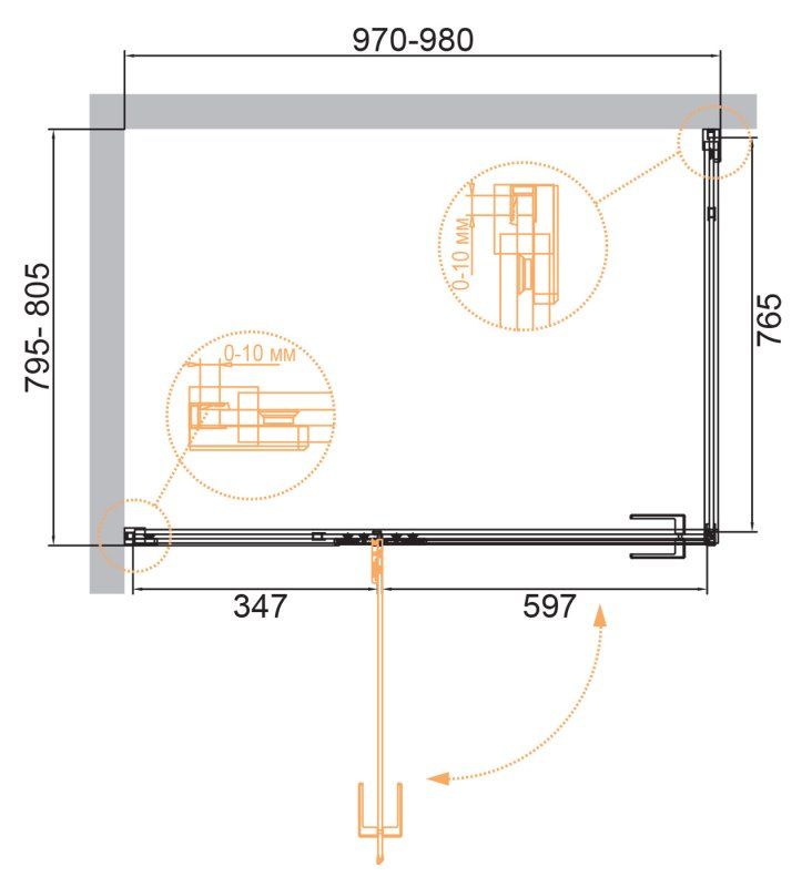 Регулировка ширины: предусмотрена за счет боковых профилей