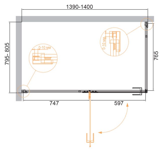 Материал полотна двери: закаленное стекло, стандарт EN12150-1:2000
