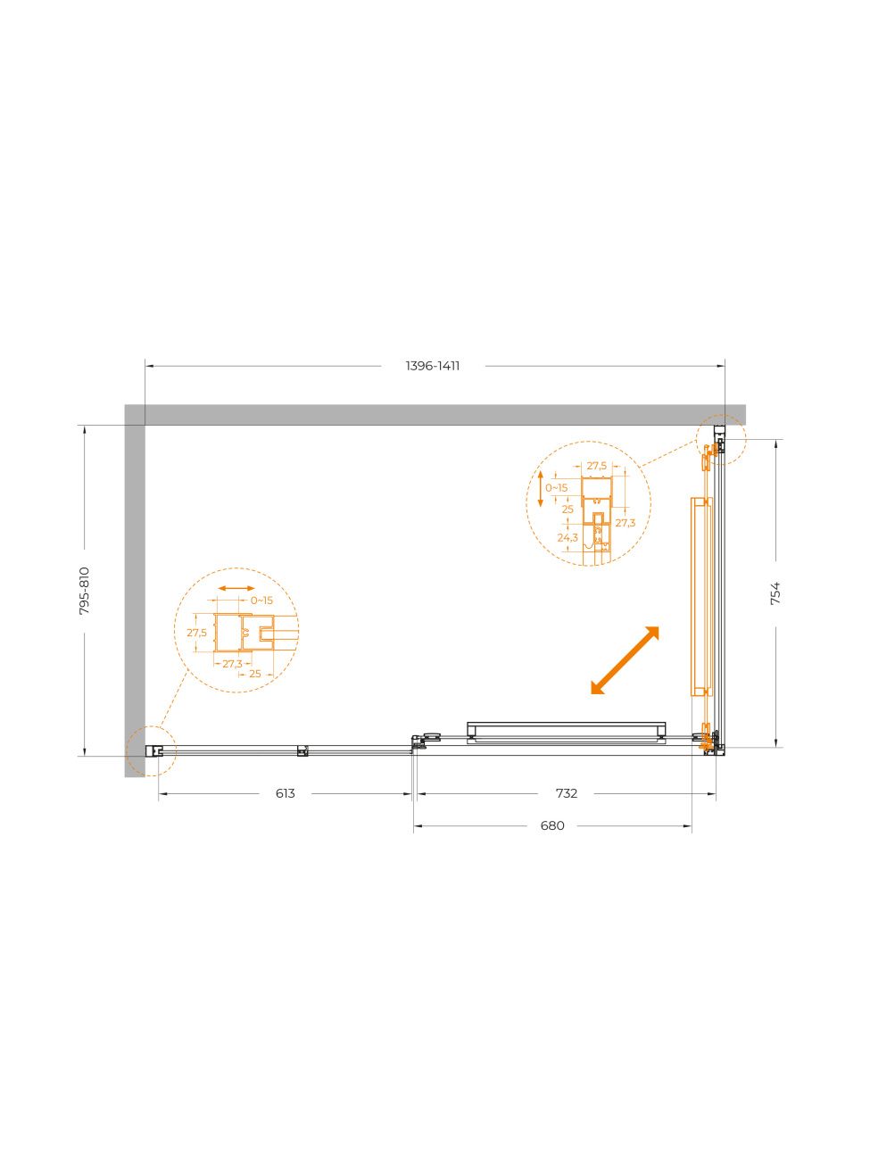 Душевой уголок CEZARES LUX-AH-FS-11-140/80-C-GM оружейная сталь купить