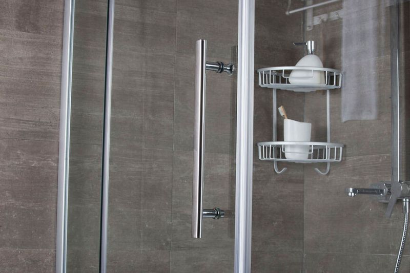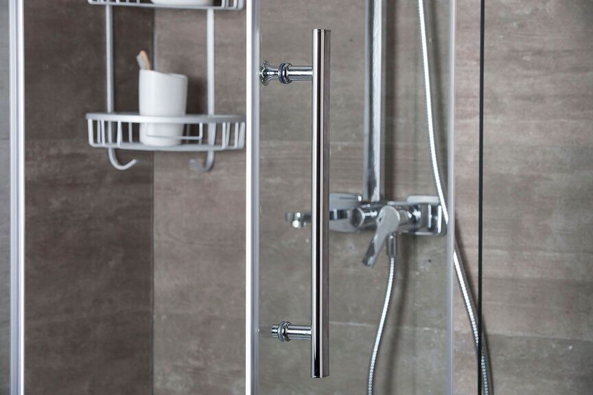 Дверные ручки выполнены из качественных материалов. Обладают важными качествами: удобством в использовании, элегантностью и долговечностью. • Распашная система открывания дверей. Нижнеопорные петли исключают проседание дверей в процессе эксплуатации. Алюминиевый профиль обладает высокими антикоррозийными свойствами. Матовая поверхность профиля придает ограждениям привлекательный внешний вид. Магнитная лента плотно фиксирует стеклянные двери в закрытом положении, не давая попадать воде на пол и стены. Силиконовый профиль служит для уплотнения зазора между полом и стеклом.ПОДДОН НЕ ВХОДИТ В СТАНДАРТНУЮ КОМПЛЕКТАЦИЮ ИЗДЕЛИЯ И ПРИОБРЕТАЕТСЯ ОТДЕЛЬНО. РАЗМЕР И ФОРМА ПОДДОНА ДОЛЖНЫ СООТВЕТСТВОВАТЬ РАЗМЕРУ И ФОРМЕ ОГРАЖДЕНИЯ.