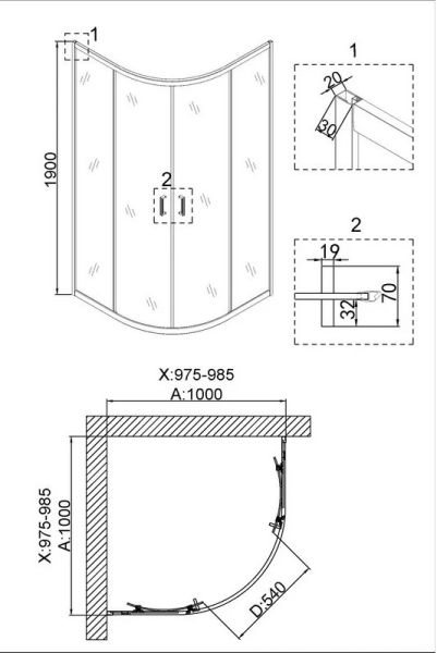 - душевое ограждение выполнено из анодированного алюминия с желто-золотым покрытием