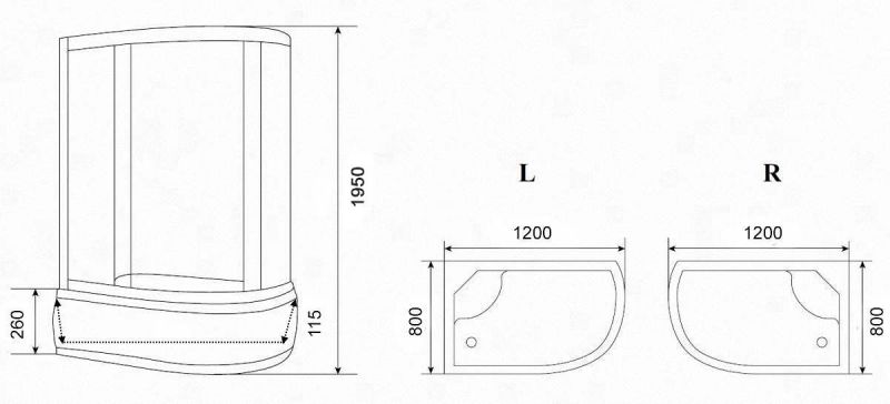 Уголок ZFM1201L душевой PARLY с поддоном (120х80х195)